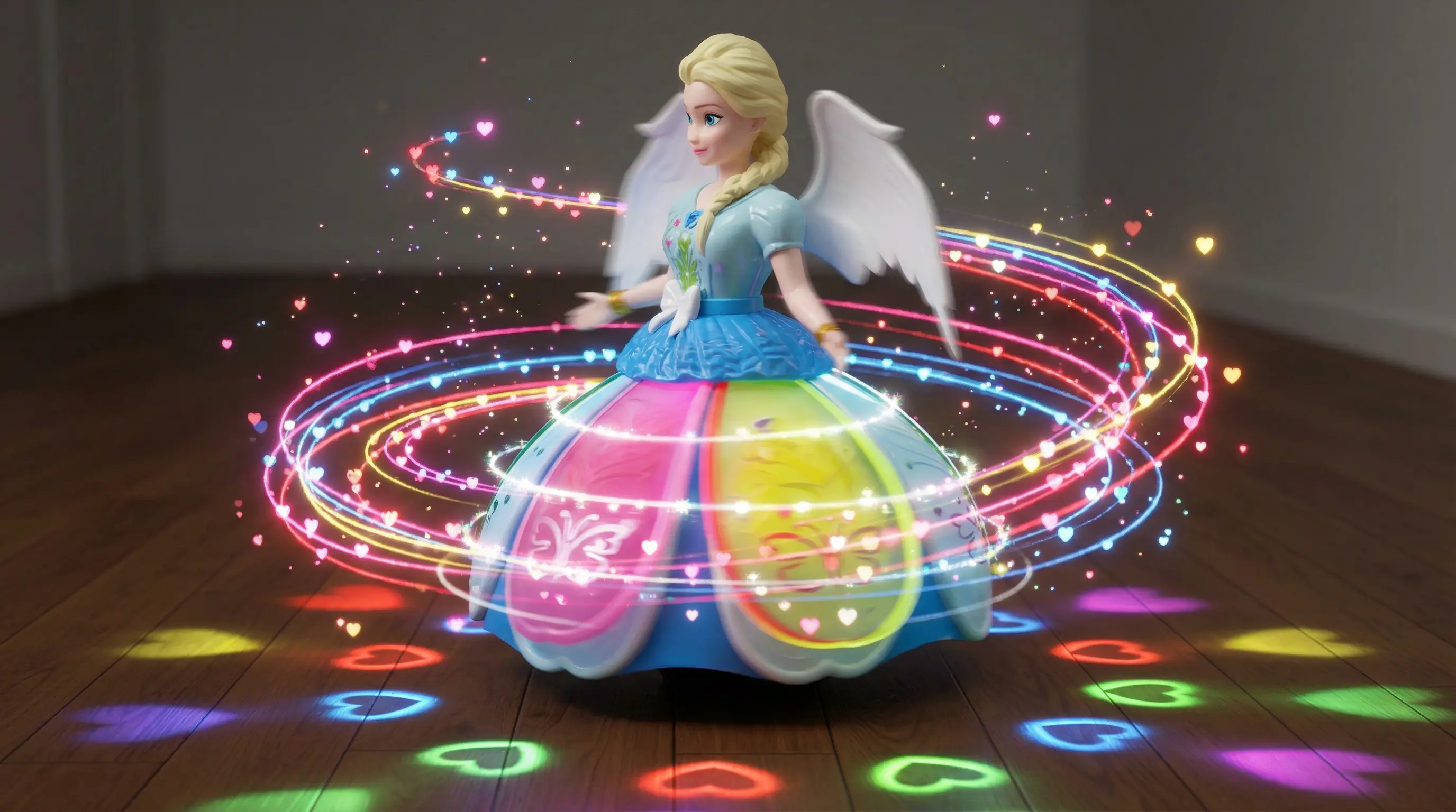 دمية أميرة راقصة ومضيئة 360° لعبة أطفال موسيقية تمنح طفلتك عرضاً ممتعاً بالأضواء والحركة الدائرية، لتعيش لحظات مليئة بالفرح والحماس داخل البيت.