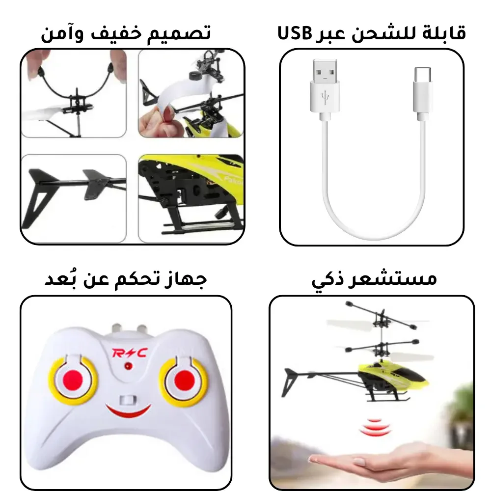 مستشعر ذكي: عند وضع اليد أسفل الهليكوبتر، ترتفع تلقائيًا لتجربة لعب ممتعة وتفاعلية.